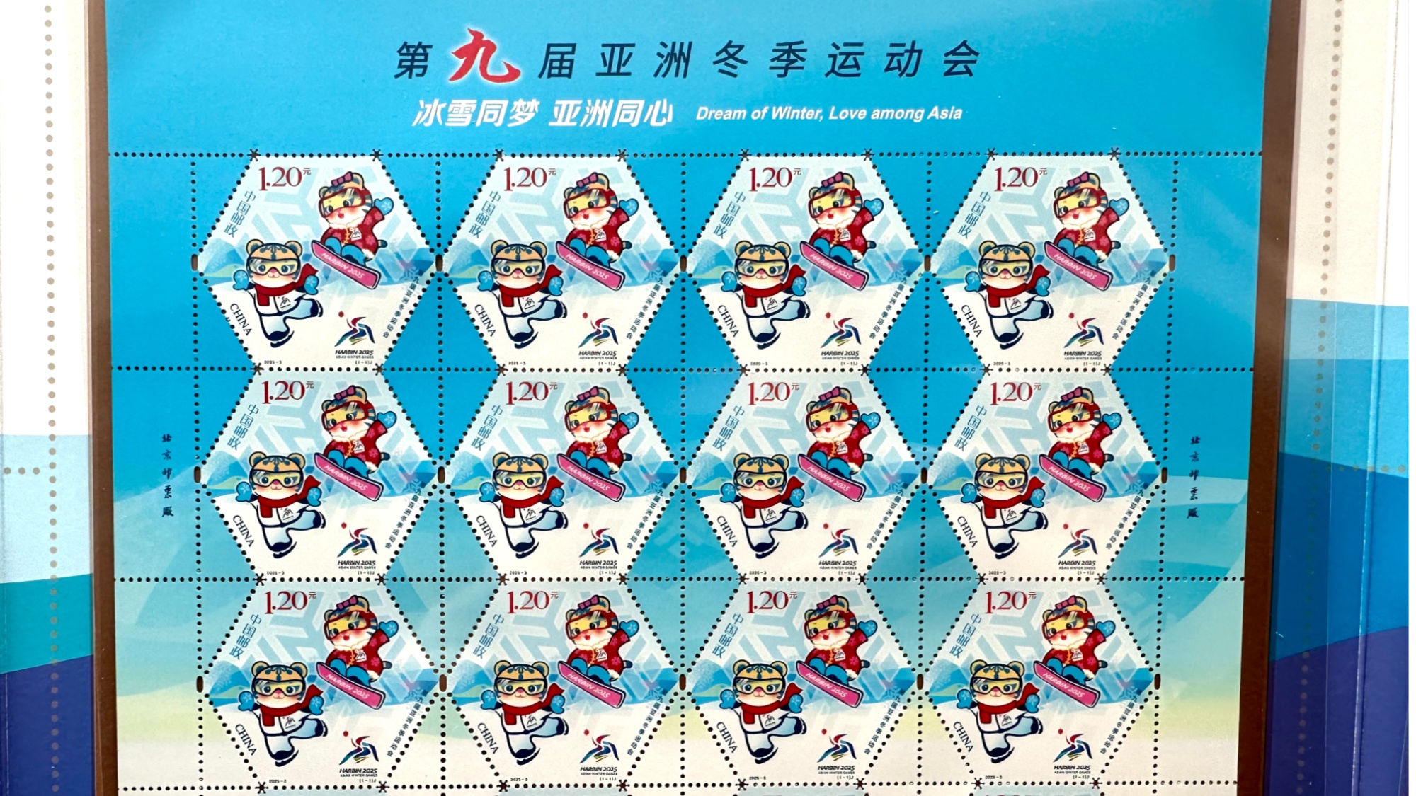 《第九届亚洲冬季运动会》纪念邮票(央广网记者 张瀚予 摄)