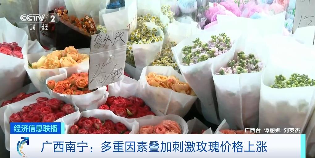 (央视财经《经济信息联播》)元宵节叠加西方情人节,这两天,鲜花销售迎来热潮,在广西南宁,记者走访鲜花市场发现,一些花材价格普遍大幅上扬,远超往年同期水平。