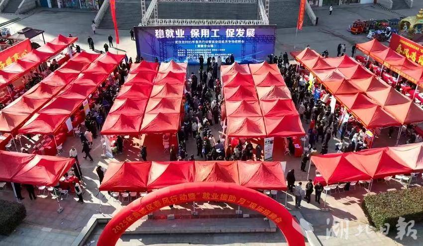 江夏区于2月10日在区体育馆举办2025年“春风行动”暨就业援助月大型综合招聘会。活动吸引了286家企业进场,提供约1.5万个工作岗位,现场共设置了汽车及智能制造、光电子、大健康、现代农业、现代服务业、退役军人招聘等6个专区,还开设了直播探岗活动,主播带着镜头与线上观众一起“零距离”了解现场企业信息。通过线上线下联动、政策保障与岗位对接相结合,提高了招聘效率。招聘会参与企业不乏腾讯、楚能新能源等江夏龙头企业,涵盖了工程师、销售、财务、技术等50余种岗位类型,满足各年龄段、不同职业背景和文化水平劳动者的求职需求。当天,直播观看人次达到9.5万。现场参加活动人数超过1万人,收到简历数6253份,达成意向3156人。
