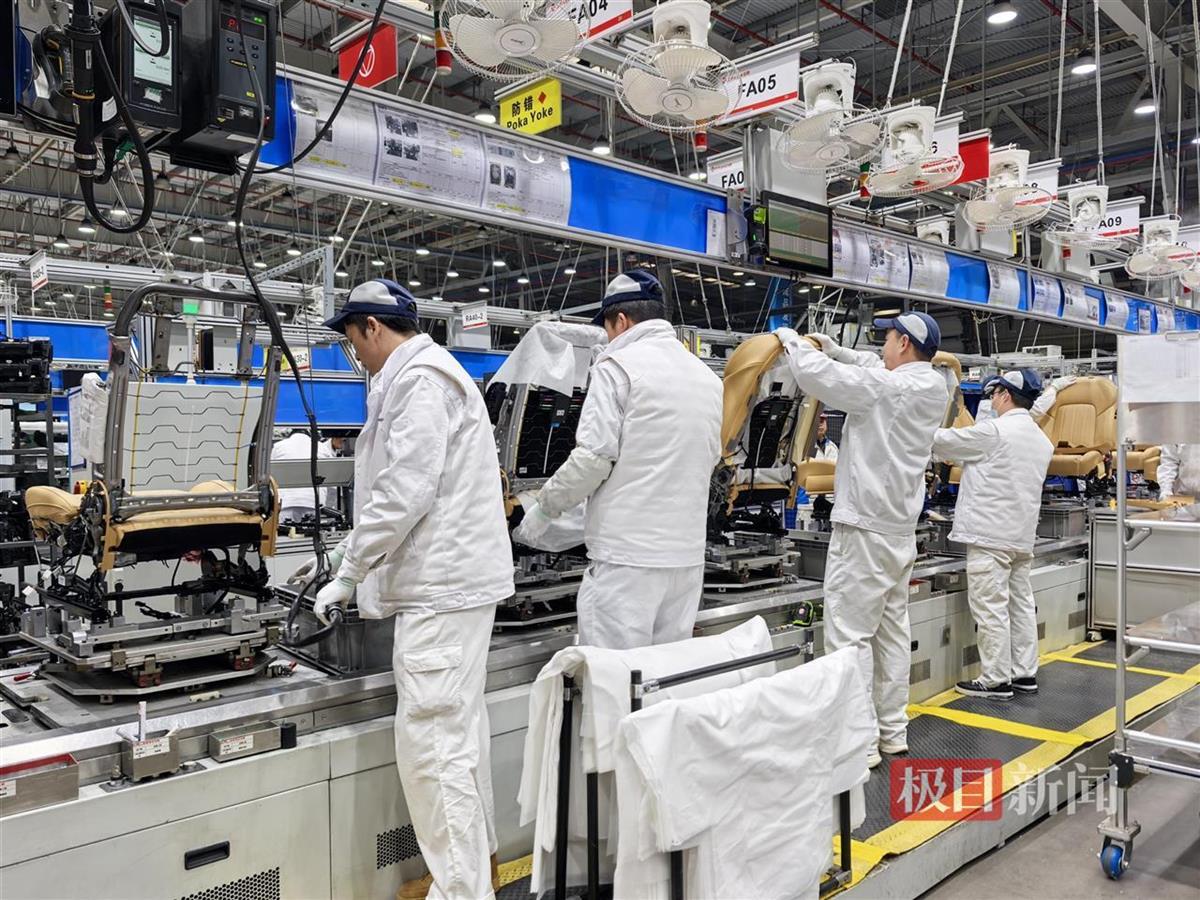 该工厂不仅智能化程度高,还将智能化与绿色化深度融合。武汉东风李尔云鹤汽车座椅有限公司高级经理李轶岚介绍,该公司采用柔性化生产线,通过产线的智能化改造,现在每条生产线具备小批量、多品种的生产能力,在一条线上可以同时生产多个产品的座椅,减少了投入资源浪费,同时提高了生产效率,单条生产线的效能提升了20%。
