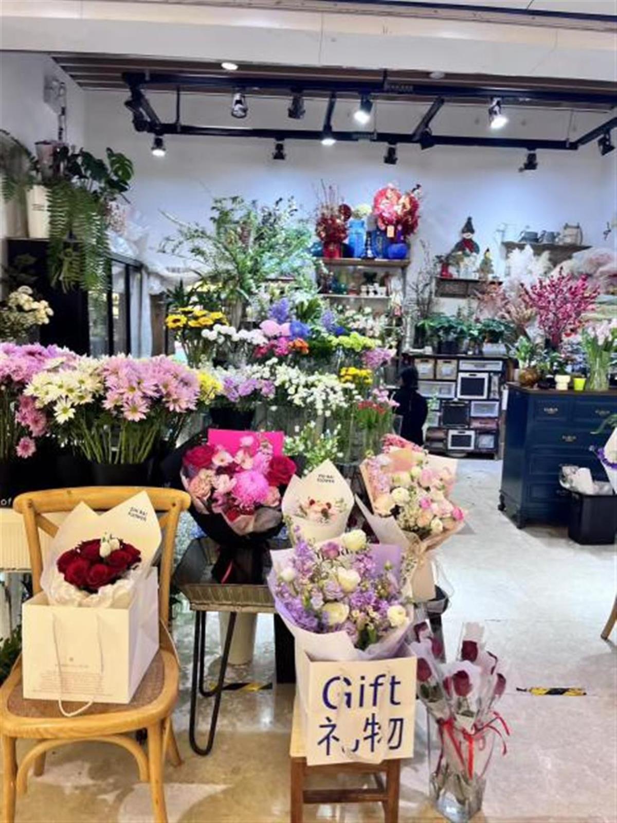情人节除了买金,一束鲜花的仪式感必不可少。在岳家嘴地铁口附近的一家花店,店主正在忙碌地制作着各种玫瑰花束。店主王女士表示,为了迎接情人节,她提前一周进购了大量的玫瑰花,并设计了多款精美的花束。“成品的鲜花束会卖得更好,比如爱意满盈的红玫瑰。”
