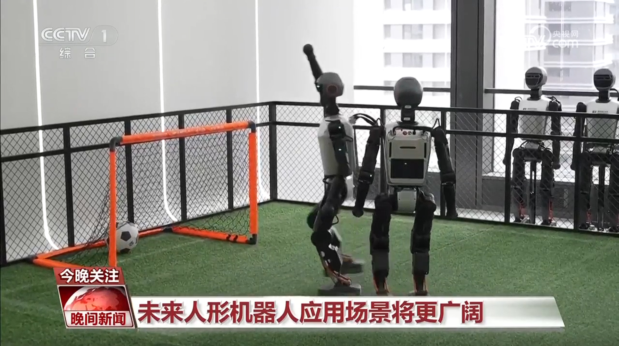 不仅是工业场景的训练,这里还有一个机器人的足球训练场。工作人员告诉记者,这些机器人刚刚在机器人世界杯中取得了冠军。实际上,训练机器人踢足球,是为了不断迭代它们的运动控制、视觉感知、智能策略等技术,提升运动能力、反应能力、智能能力,未来在医疗康养等领域有广阔的应用场景。