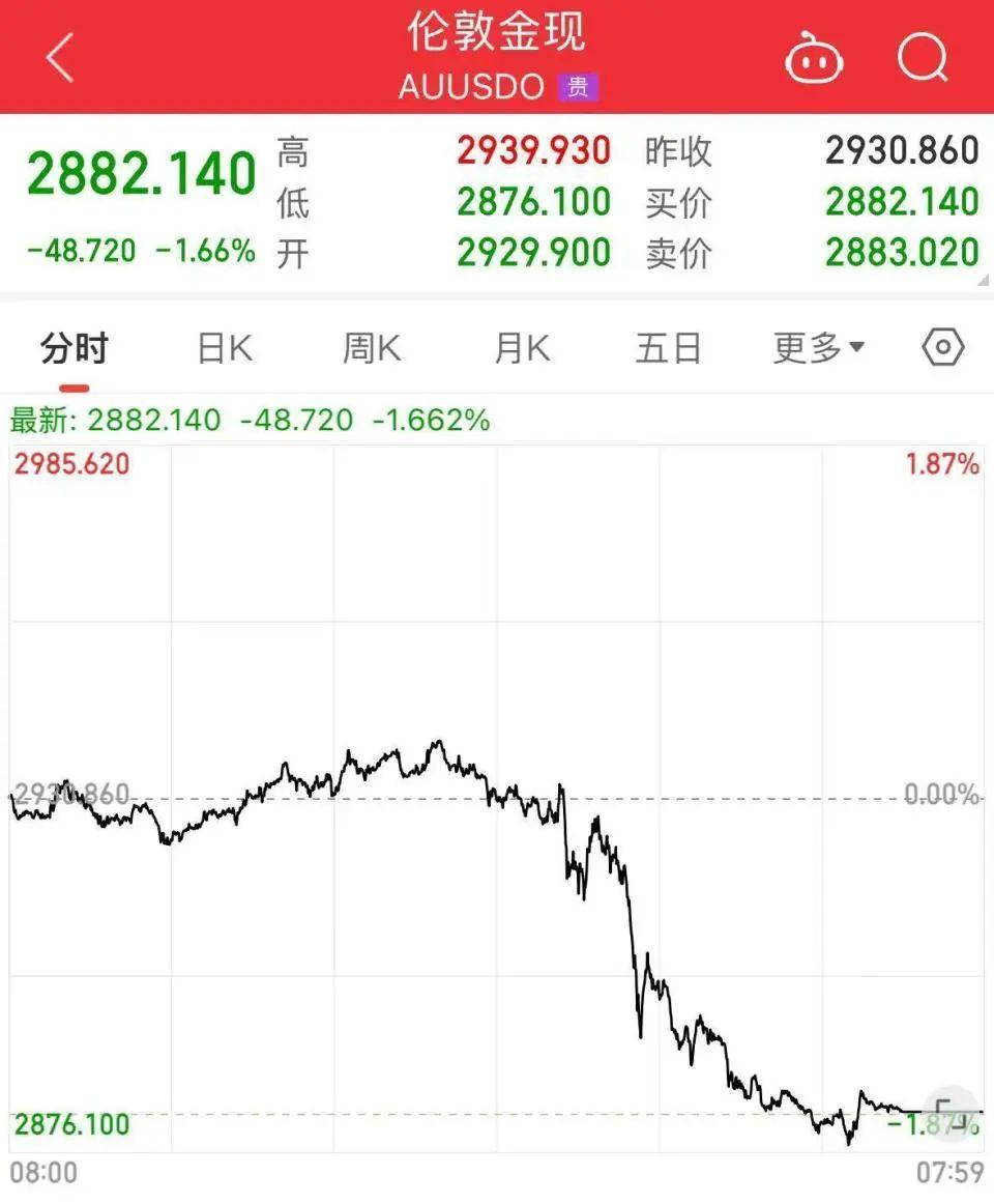 在连涨七周并创下历史高位后,黄金价格在周五欧洲交易时段跳水,失守2900美元关口,截至2月14日收盘,COMEX黄金期货大跌1.76%,创下本轮上涨以来的最大单日跌幅。伦敦金现下跌1.66%。