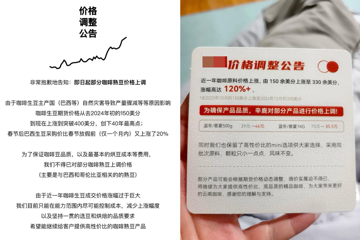 记者调查发现,从去年开始,国内不少售卖咖啡豆的店铺陆续发布了价格调整公告,涨幅在20%左右。