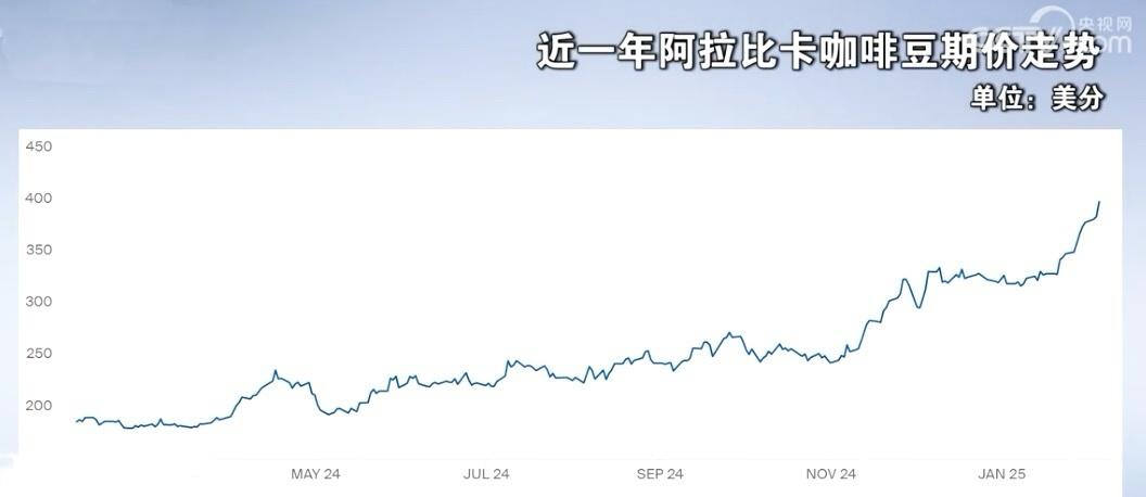 美国纽约洲际交易所(ICE)数据显示,仅在2024年,咖啡期货累计涨幅约70%,其中,阿拉比卡咖啡期货价格创下47年来新高。