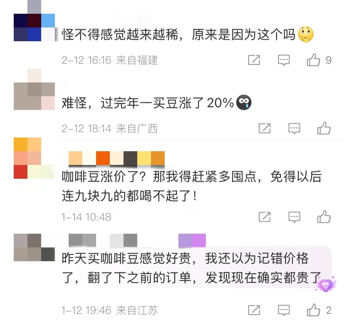 不少网友发出疑问:咖啡会集体涨价吗?要不要囤咖啡豆?9.9元的咖啡会消失吗?