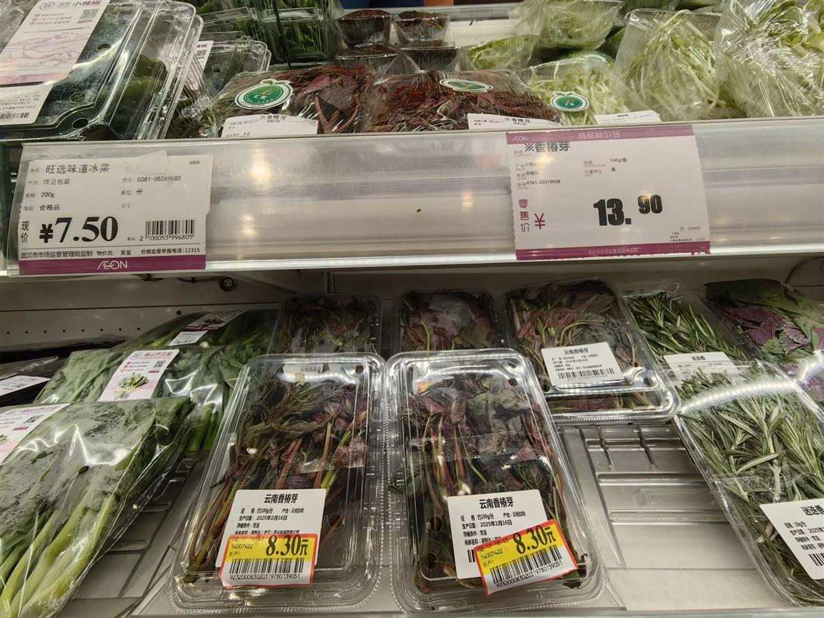 在不同的生鲜平台上,记者注意到正在主打的春季时令菜里的香椿芽每2两最便宜只要10.25元,比实体菜市场里更便宜。“去年秋冬时节到今年开春的气候都比较暖和,没有特别的极端天气。这样的气候条件让香椿芽的生长更顺利,成熟得更快,产量也更高。”本地一家既供应线上平台,又有自己的生鲜蔬菜销售渠道的曹先生介绍,在他经手的生鲜供应链上,今年不仅香椿芽的上市时间更早、价格更实惠,还有更多诸如豌豆尖、野藜蒿、荠菜等本地春季时令菜都呈现出产量更可观、价格更实惠的特点。