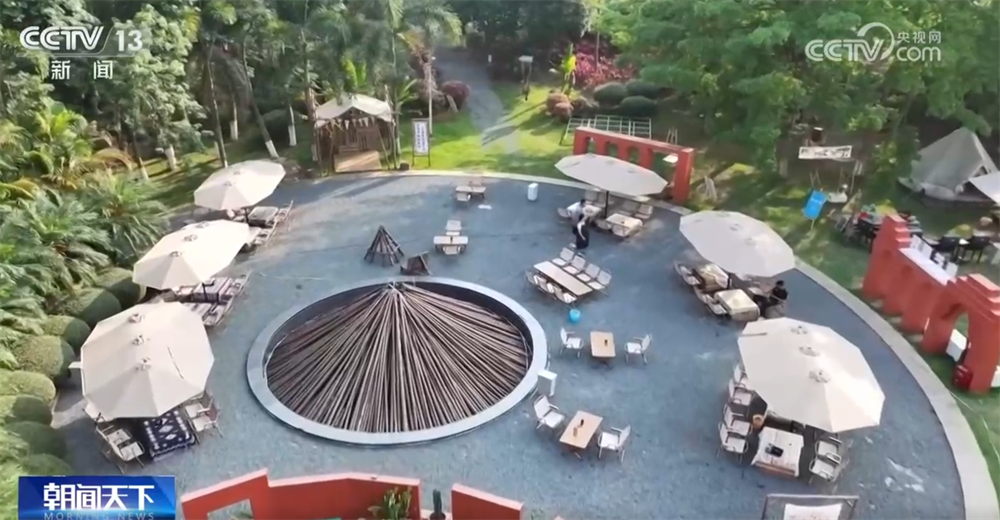 随着“本地游”和“近郊游”兴起,城市露营地也不断涌现。在广西规划馆旁的这处城市露营地里,各式帐篷应有尽有。