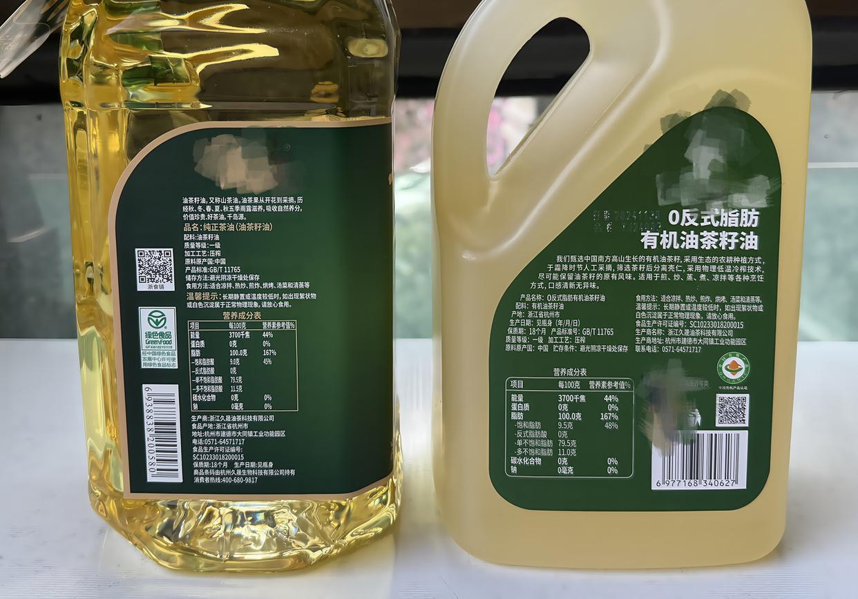 通过比对,薛阿姨发现,两瓶油的配料表里,都只写了油茶籽油这一个成分。