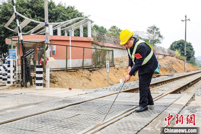 图为道口工朱贵华进行接车作业。廖婧余摄