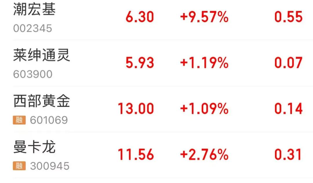 2月19日,黄金股表现同样强劲!截至当日收盘,黄金概念指数上涨0.94%。潮宏基大涨9.57%,收报6.3元/股;曼卡龙,西部黄金、明牌珠宝、莱绅通灵等均实现上涨。