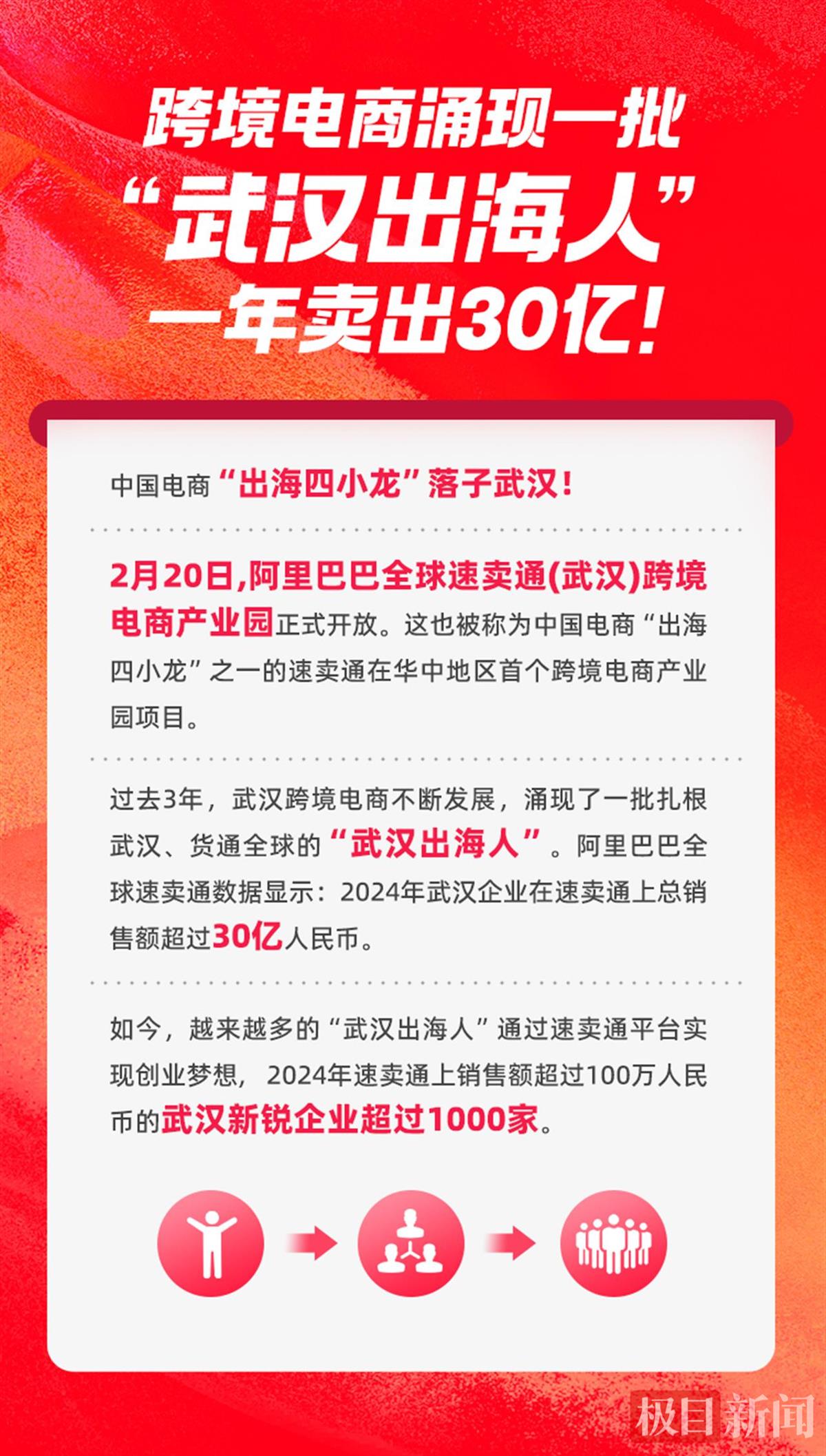 近年来,随着武汉跨境电商行业的不断发展,涌现出一批扎根武汉、货通全球的“武汉出海人”。速卖通数据显示:2024年武汉企业在速卖通上总销售额超过30亿元人民币;年GMV超过100万元人民币的武汉新锐企业超过1000家。