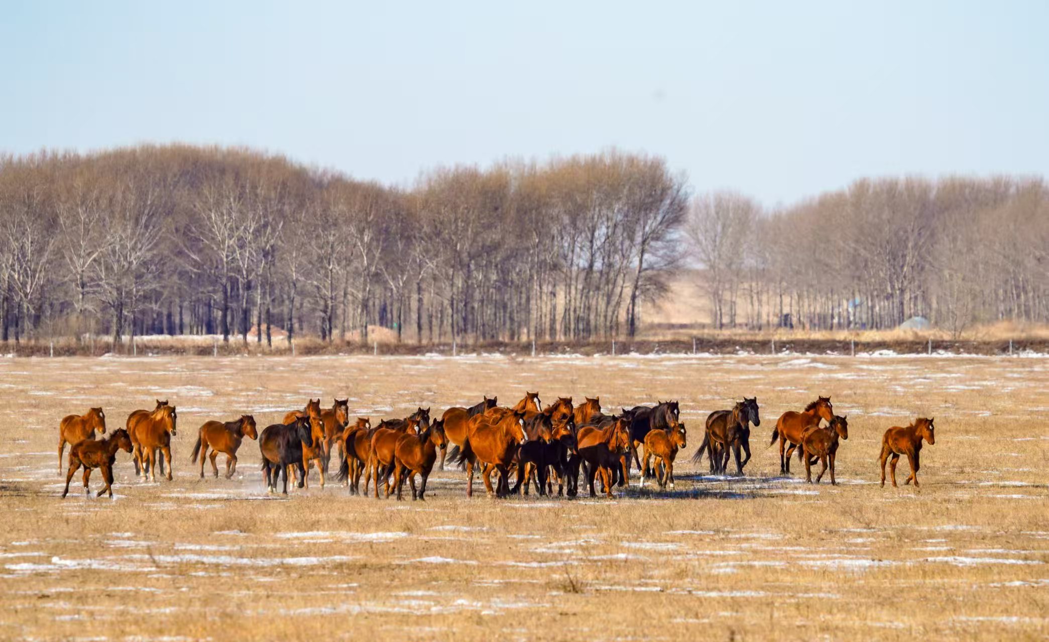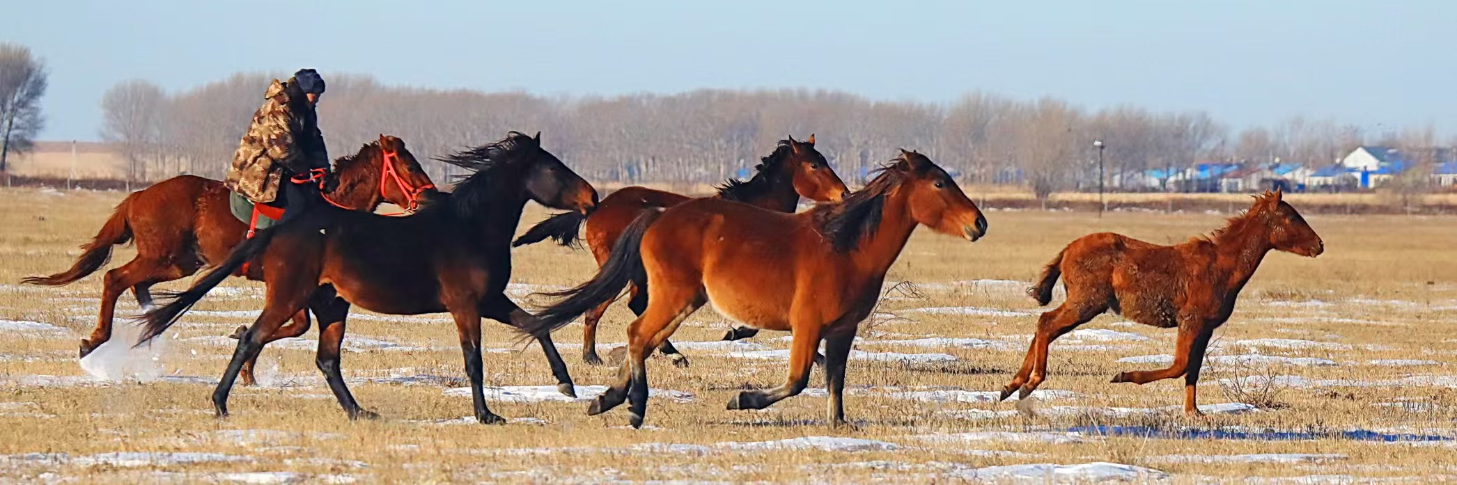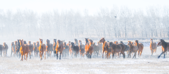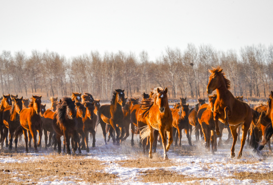 在吉林省白城市镇赉县九龙山马场,早春二月的斑驳雪原上,百匹苏高血马正迈着矫健步伐。它们不仅是草原上的灵动精灵,更是历史与现代交织的珍贵见证,承载着厚重意义。