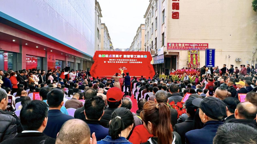 2023年4月,坐落于花都区狮岭镇合成村,占地面积约2万平方米的狮岭零工市场建成并投入运营。2024年,花都区结合实施“百千万工程”,按照“3中心2平台1广场”的整体规划,对狮岭零工市场进行省级标准化建设,先后建成数智服务中心、综合服务中心、技能提升中心、“直捷招”线下招聘平台及招聘广场,向招用工双方提供供求信息登记、智能匹配、职业指导、技能培训、权益保障等服务,打造“一站式、全天候、智能化”的数字零工市场服务场景。