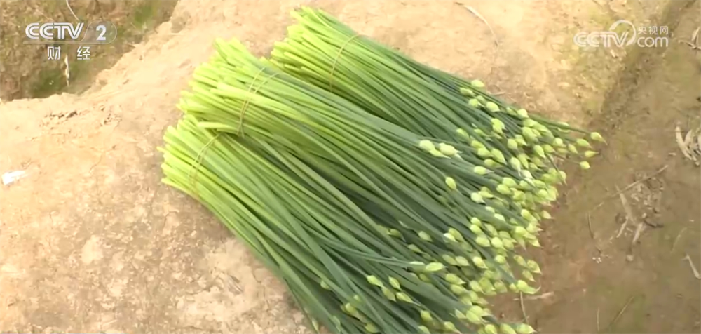 央视网消息:眼下,在广西贺州市昭平县,韭菜薹陆续成熟,村民们抢抓农时加紧采收,田间地头一派忙碌景象。