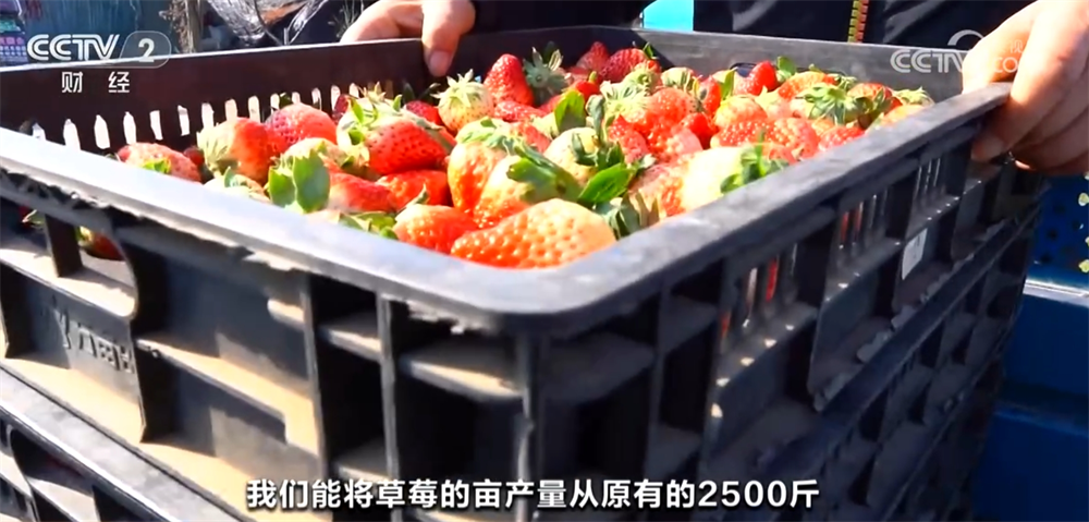 草莓种植户称:“通过智能大棚,我们能将草莓的亩产量从原有的2500斤提升到现在的3500斤左右,大概每亩的销售额在6万元左右,纯利润达到3万元,是普通大棚的双倍。”