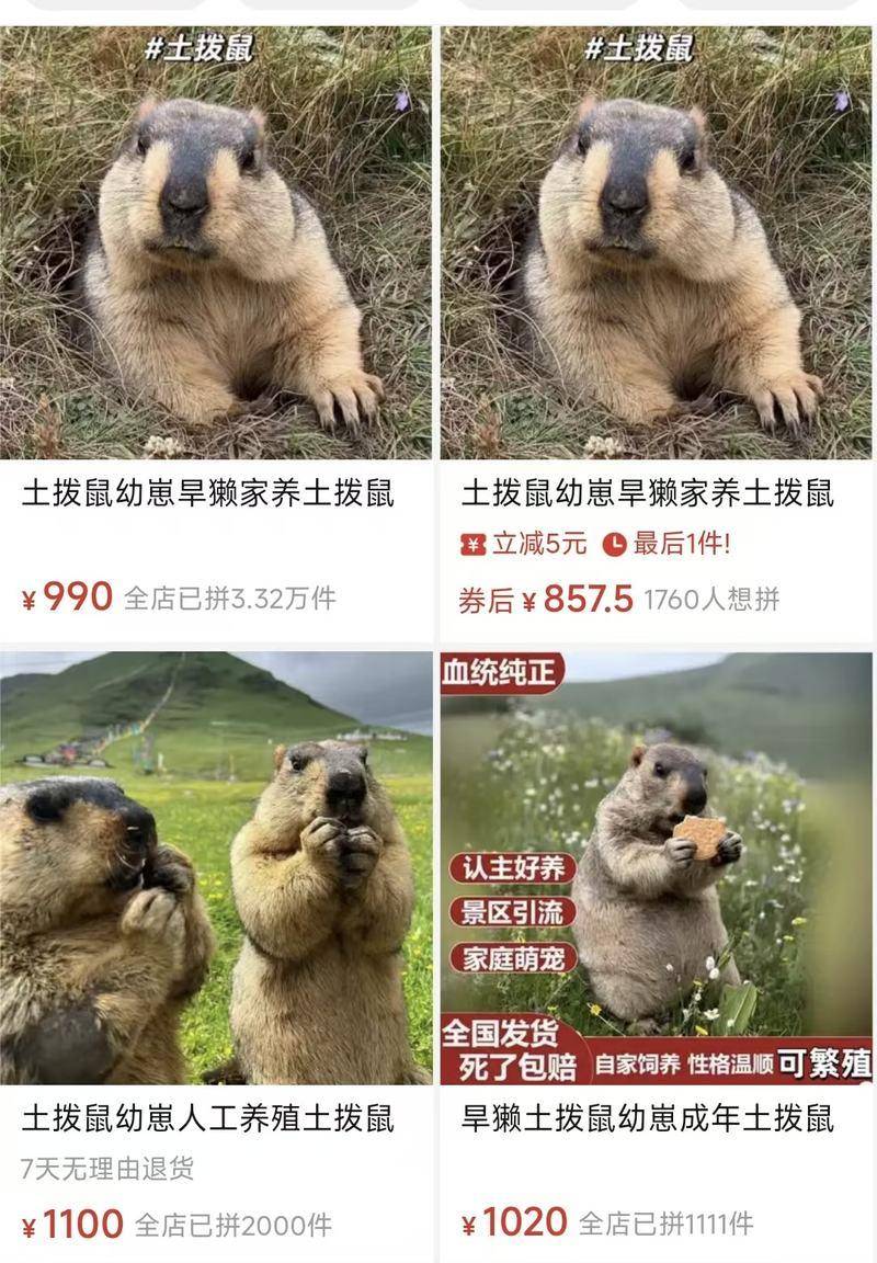 有商家在某电商平台上售卖活体土拨鼠。图源:电商平台页面截图