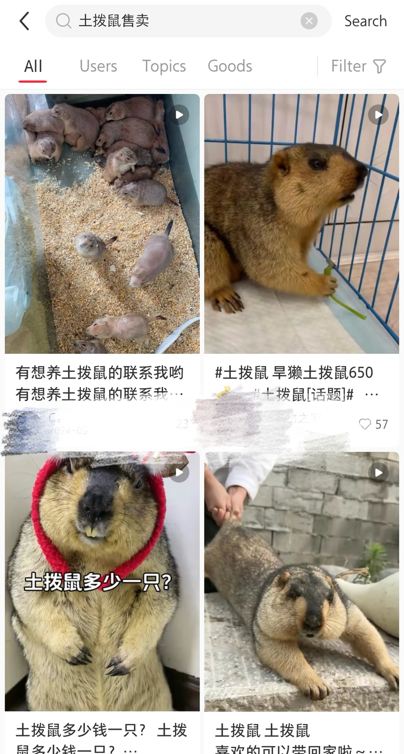 社交媒体平台上同样有售卖土拨鼠的商家。图源:社交媒体平台页面截图