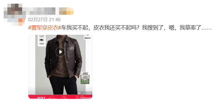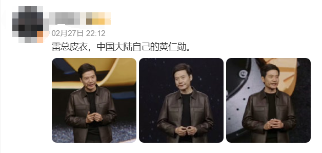 当晚,#雷军穿皮衣#登上微博热搜,大伙纷纷表示:“中国大陆自己的黄仁勋”“车我买不起,皮衣我还买不起吗?”