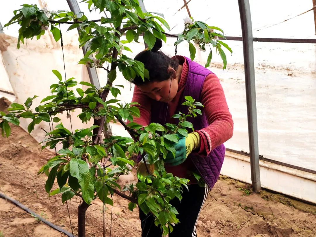 叶城县洛克乡乌堂村股份经济合作社员工热伊莱·伊敏说:“我在这边工作后,不仅收入增长了,而且能学到技术,一个月能挣两千块钱左右,离家近,能照顾家里和小孩,后期学到技术后我们也可以自己去种植樱桃,增加收入。”