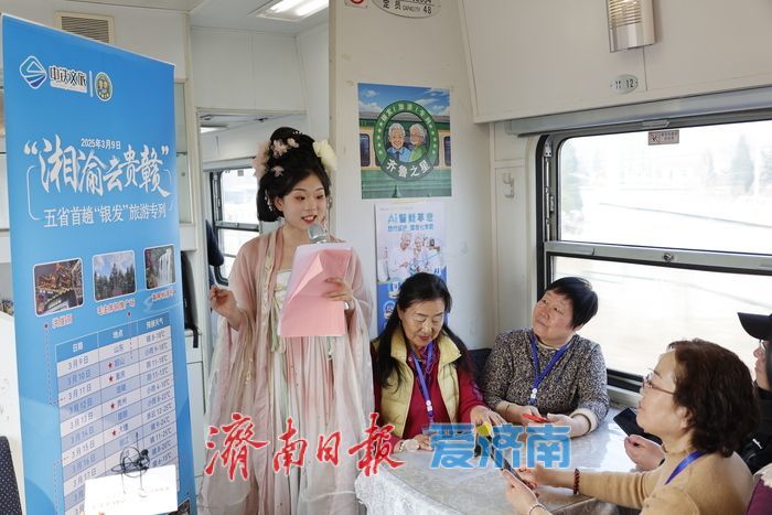 2025年3月9日,山东首趟以“银发经济”为核心的旅游专列——“齐鲁之星”正式启程。专列满载770位平均年龄60岁以上的游客,开启为期14天,横跨湘渝云贵赣五省的春游踏青之旅。本次专列为全列空调卧铺车厢,行程除了领略自然风光外,还包括探访伟人故里、寻秘巴东秘境、重庆吊脚楼、中国最美乡村等人文体验,让游客在舒缓悠闲的旅途中领略春日风光、体验民族风情。