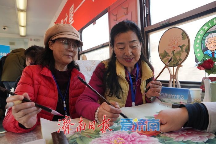 山东中铁文旅发展集团党委副书记、工会主席徐玫介绍“本次专列60岁以上的旅客占到95%以上,可以说是一趟名副其实的银发旅游列车。此次专列设置有4个专区分别为健康检测专区、心理辅导专区、书画创作专区和非遗体验专区。为旅客提供更好的学习交流平台,丰富旅客旅行生活。”