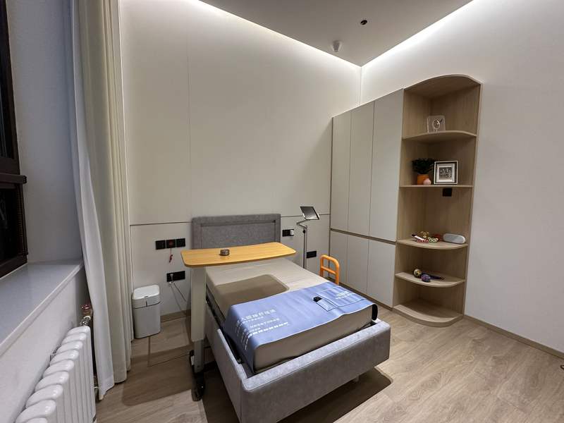 在首批发布的样板间中,还有许多这样的设置或设备,如位置只有1米多的猫眼,让坐轮椅的老人也能看到外面。在换鞋凳两侧增加扶手,高度设计符合人体工程学,让老人站起时有支撑。在卧室配备空气净化器等科技产品。在卫生间安装可内外开启的门、防水背衬板,合理设置扶手位置,浴室柜镜面倾斜,方便轮椅老人使用。厨房采用下拉式吊柜设计,烟感设备与家电联动,提高安全性和便利性。此外还有全屋智能控制系统,可以对全屋的音响、灯光进行适应性调整,甚至可以实现一键同步调整,满足老年人对多样化生活情景模式的需求……