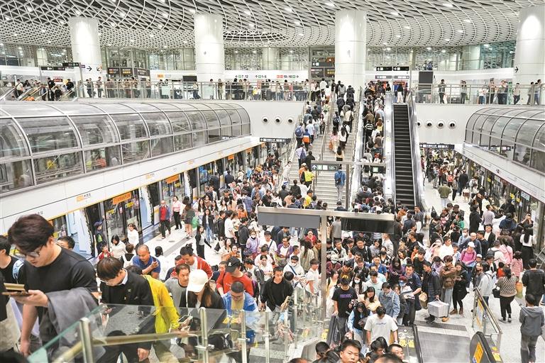 ▲深圳地铁岗厦北站人潮涌动(资料图)。深圳晚报记者严文婷摄