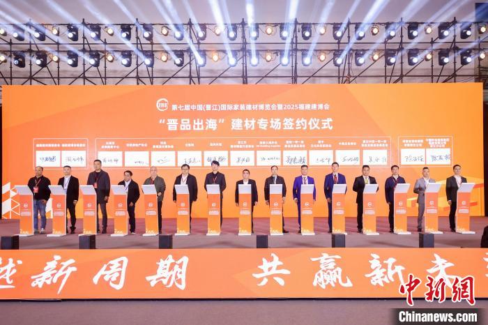 3月18日,第七届中国(晋江)国际家装建材博览会暨2025福建建博会开幕。图为“晋品出海”建材专场签约仪式。晋江市委宣传部供图