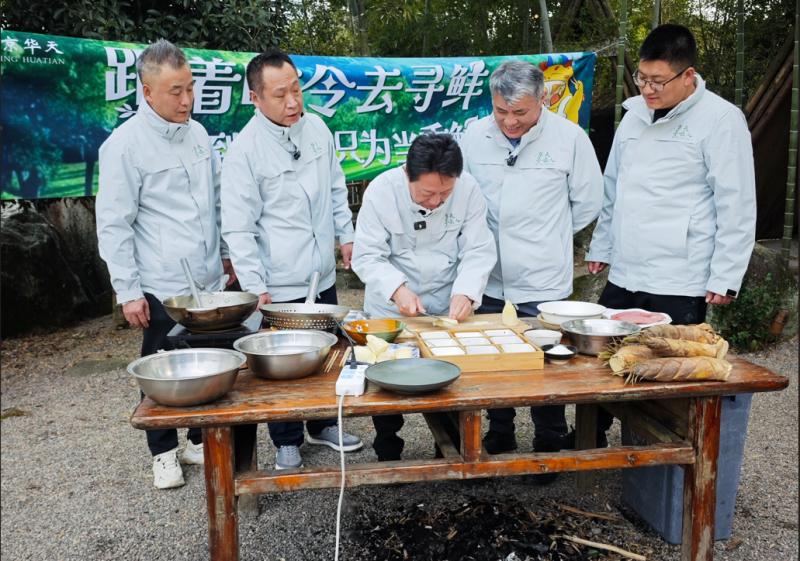 除了食材溯源,华天老字号烹饪大师们还现场进行了菜品研发,将传统技艺与山野春鲜深度融合,满满的人间烟火气令人向往。同为中国烹饪大师的王鸿庆,是同春园江苏菜制作技艺第三代传承人,他则更注重春鲜的搭配:“如何凸显溪源明笋的鲜、嫩、脆,在辅料的选择上也很有讲究。”王鸿庆大师介绍,他充分发挥江苏菜的“鲜味”优势,以河虾、腊肉、青豌豆三种鲜美食材作为春笋的辅料,一道春炒三鲜可谓“鲜上加鲜”,满溢的江南风味将是北京市民春季尝鲜的不二之选。