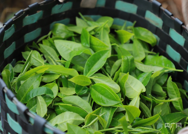 茶农刚采摘好的茶叶(央广网发甘景轩摄)