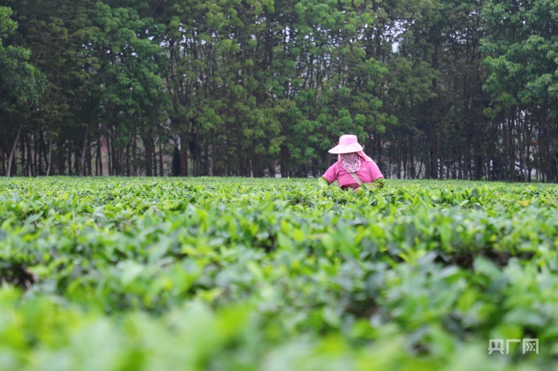 茶农在茶园里采摘茶叶(央广网发甘景轩摄)