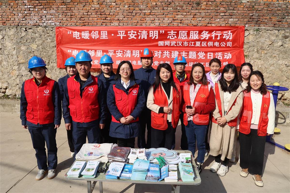 2025年3月20日,国网武汉供电公司“鄂电红马甲”共产党员服务队联合江夏区纸坊街道秀山社区志愿者,开展“电暖邻里·平安清明”志愿服务活动,通过“安全科普+暖心服务”组合拳,织密清明防火安全网,守护居民用电平安。