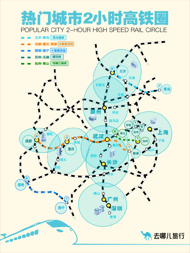 中国热门城市2小时高铁圈。“去哪儿”供图