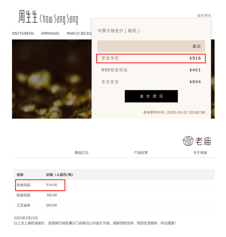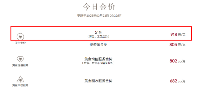 今日各大黄金珠宝品牌,公布其最新足金饰品价格。其中,周生生足金饰品标价916元/克,一夜跌去6元/克。老庙黄金足金饰品标价914元/克,一夜跌6元/克。周大福足金饰品标价918元,一夜跌5元/克。