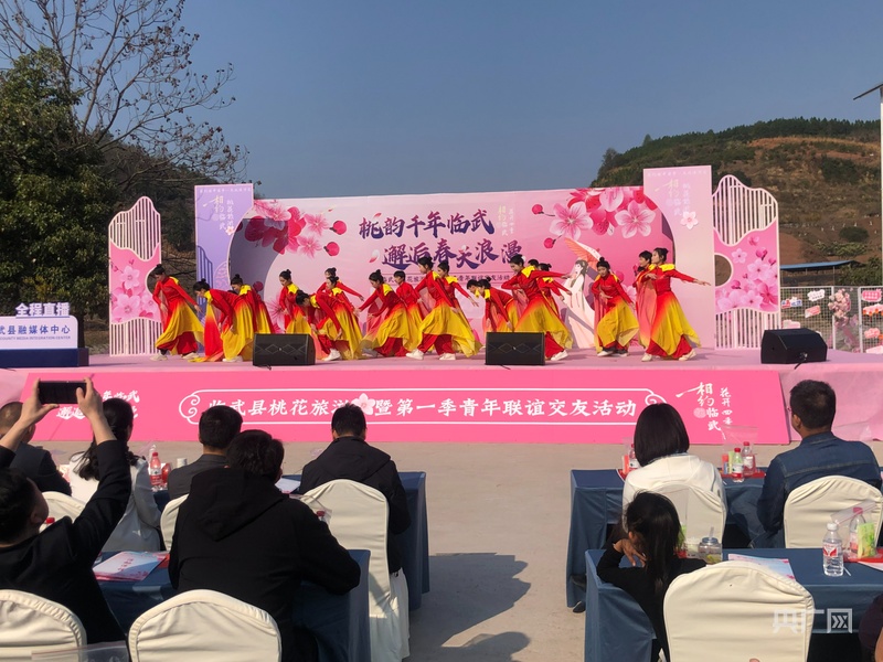 当日上午9时,开幕式文艺汇演在黄皮山桃林间的露天舞台拉开帷幕。歌舞《壮丽启航》《流水桃花》以汉唐风韵呼应桃林古意,歌曲《绿水青山》及歌伴舞《颂航》则用别样艺术演绎春日灵动。