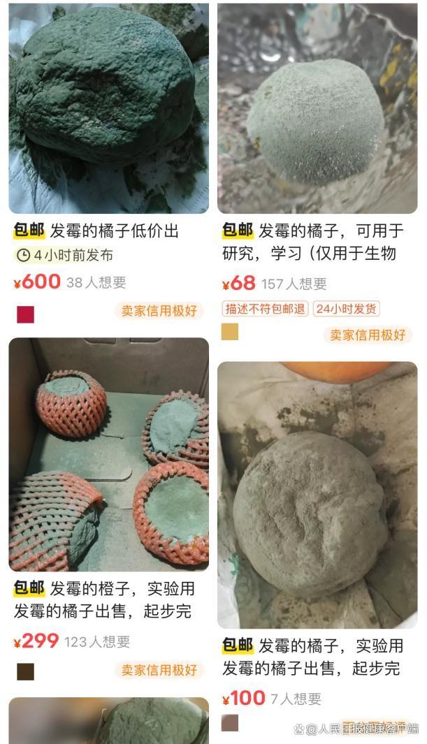 (人民日报健康客户端记者 王宁)3月21日,人民日报健康客户端记者检索发现,在二手平台上,发霉的橘子标价从几十到几百不等,这些发霉的橘子有的表面长满了霉菌,有的半面有菌群共生,有的标注 “自然霉变”,仅用于生物医学实验……