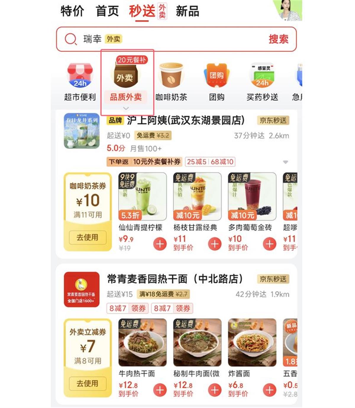 极目新闻记者从京东方面了解到,京东外卖平台上,已有超45万家品质堂食餐厅为包括武汉在内的全国142城用户提供餐品。每天上午10时、晚8时,京东PLUS会员及在校大学生用户可抽取“最高20元餐补”,所有用户都可参与“每天抽餐补”活动,必得数额不等的餐补优惠。