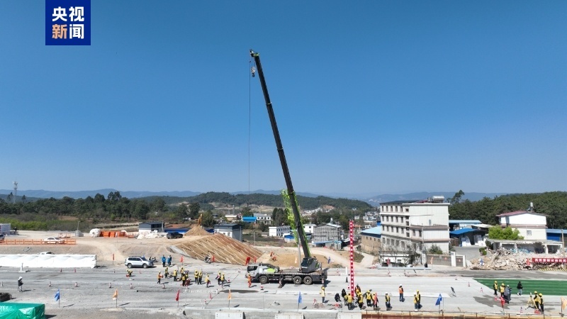 3月25日上午,在云南省昆明市渝昆高铁建设现场,施工人员将首根接触网杆安装到指定位置,标志着渝昆高铁云南段正式进入“四电”工程施工阶段,为全线建成通车奠定了基础。