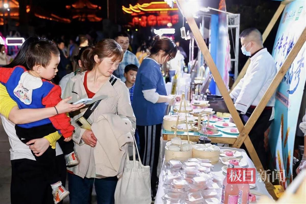 恰逢江城樱花季与武汉马拉松的文旅赛事热潮,夜幕下的黄鹤楼游人如织,活动现场热闹非凡。“荆楚粮油”品牌产品市集里,近百款粮油产品集中展示。“荆楚粮油”高油酸菜籽油、“江汉大米”潜江虾稻、“遇见武当”橄榄油、武汉热干面等湖北特色粮油产品一应俱全。