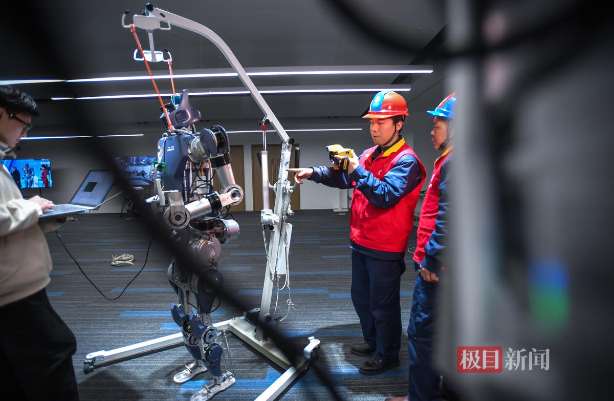3月24日,在武汉光谷创新天地园区的武汉格蓝若智能技术股份有限公司内,机器人研发团队正在测试实验室里围着一台代号“劳动者3号”的人形机器人进行模拟行走调试。这个在“楚才”机器人展览上技惊四座的新星,正在攻克负重60公斤下直膝行走的行业难题。这款由华中科技大学陈学东院士团队与武汉格蓝若智能技术股份有限公司联合研发的智能机器人,预示着未来智能科技在电力、医疗等众多领域的广泛应用前景。