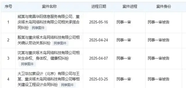 此外,另有原告诉重庆啄木鸟网络科技有限公司财产损害赔偿纠纷案件,也于3月25日在重庆市渝北区人民法院开庭审理。