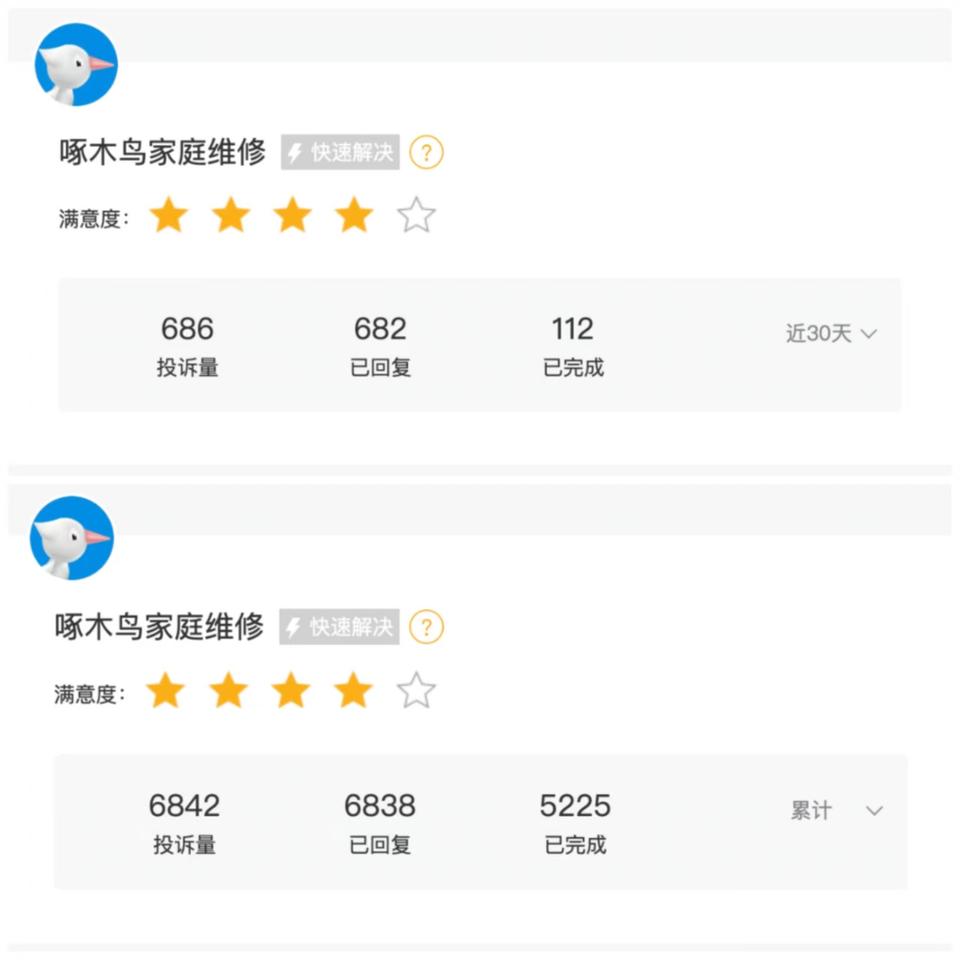 公开资料显示,啄木鸟家庭维修是目前国内最大的家电维修平台,其宣称在国内300多个城市都有业务开展,在线接单的维修师傅达10万名之多。