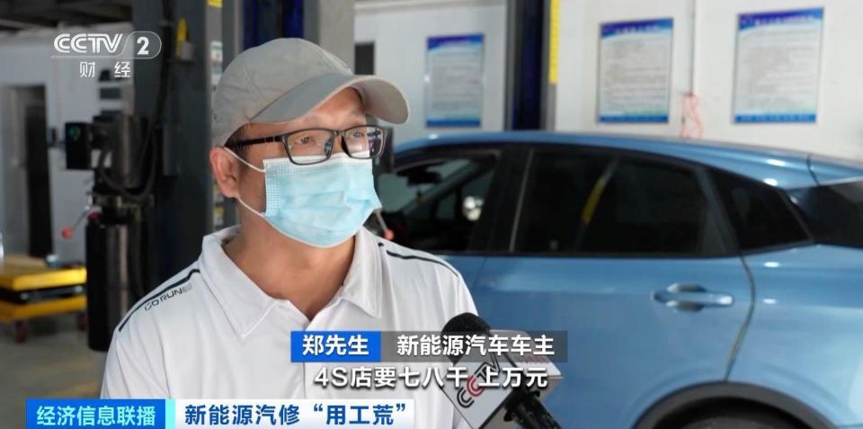 新能源汽车车主 郑先生:4S店大概要七八千元、上万元。这边修大概是三四千元,能便宜一半。专修电车的修理厂会少一点。