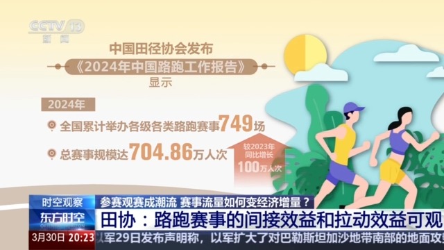 中国田径协会发布的《2024年中国路跑工作报告》显示,2024年,全国累计举办各级各类路跑赛事749场,总赛事规模达704.86万人次,较2023年增长100万人次。上海马拉松等7场头部赛事平均直接经济效益为4.19亿元,间接效益和拉动效益则更为可观。
