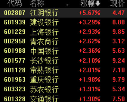 同时,港股内银股多数走强。中原银行、建设银行涨超4%,中国银行涨超2%,招商银行、工商银行涨超1%。