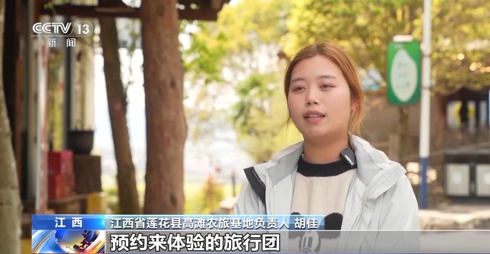 江西省莲花县高滩农旅基地负责人 胡佳:预约来体验的旅行团已经排到了半个月以后。我们特别开辟了野菜采摘区,指导游客识别野菜,采挖、加工野菜,让大家享受春天的美好,感受生态旅游新场景的乐趣。