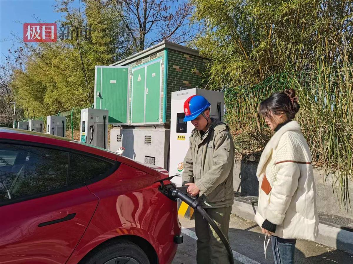 武汉蔡甸的国家电网充电站里,工作人员为车主提供细致服务(极目新闻记者 曹磊 摄)