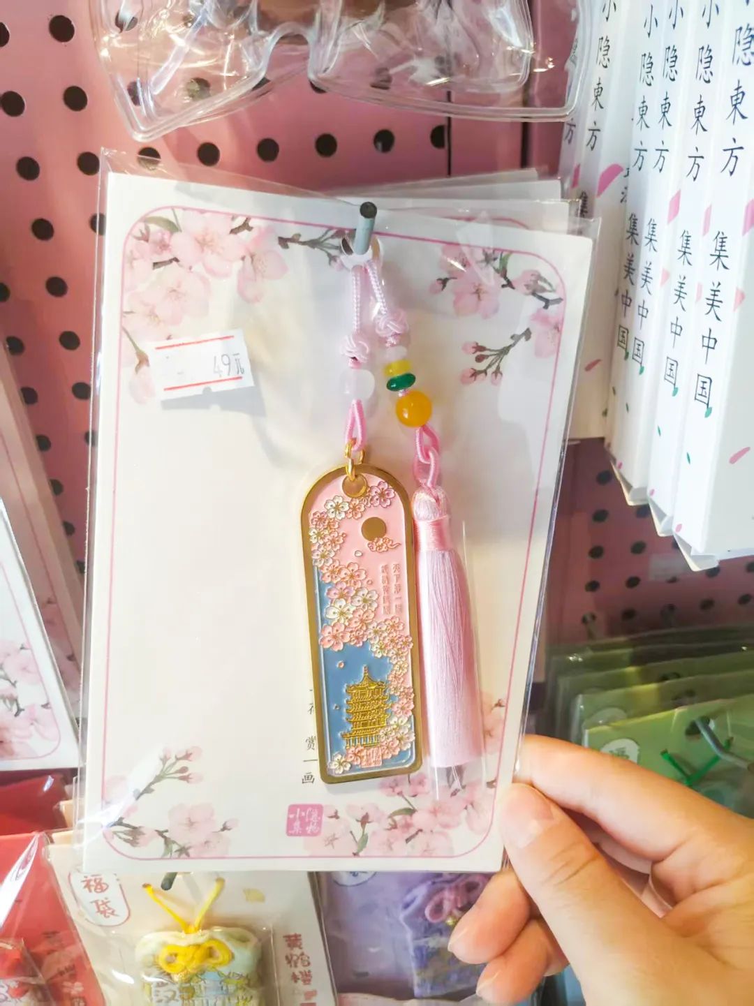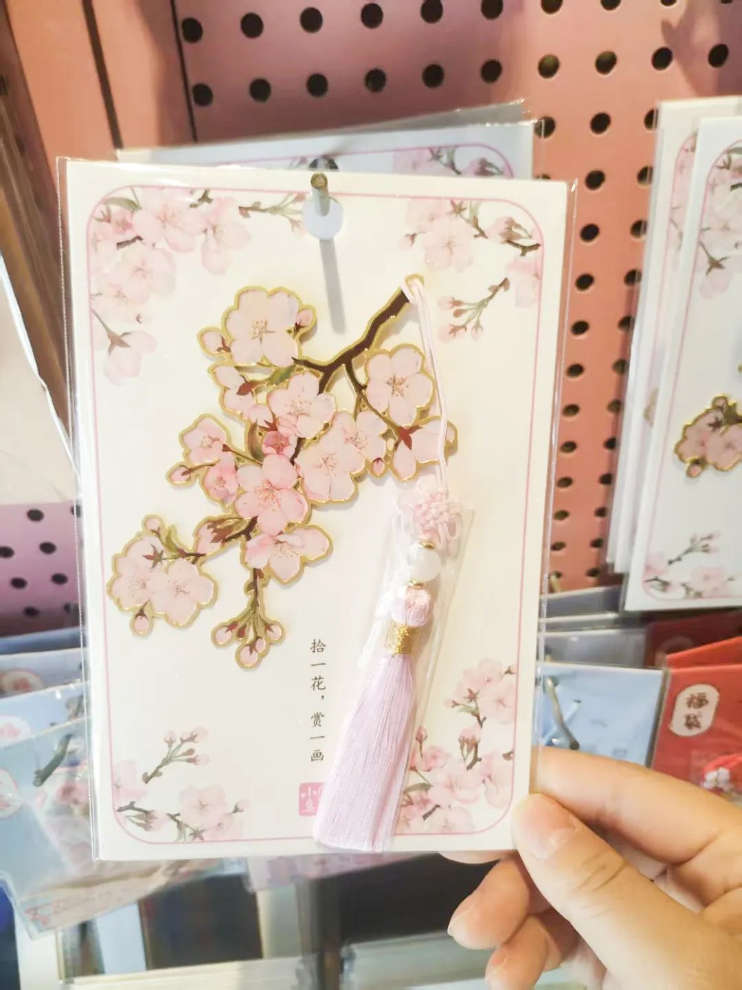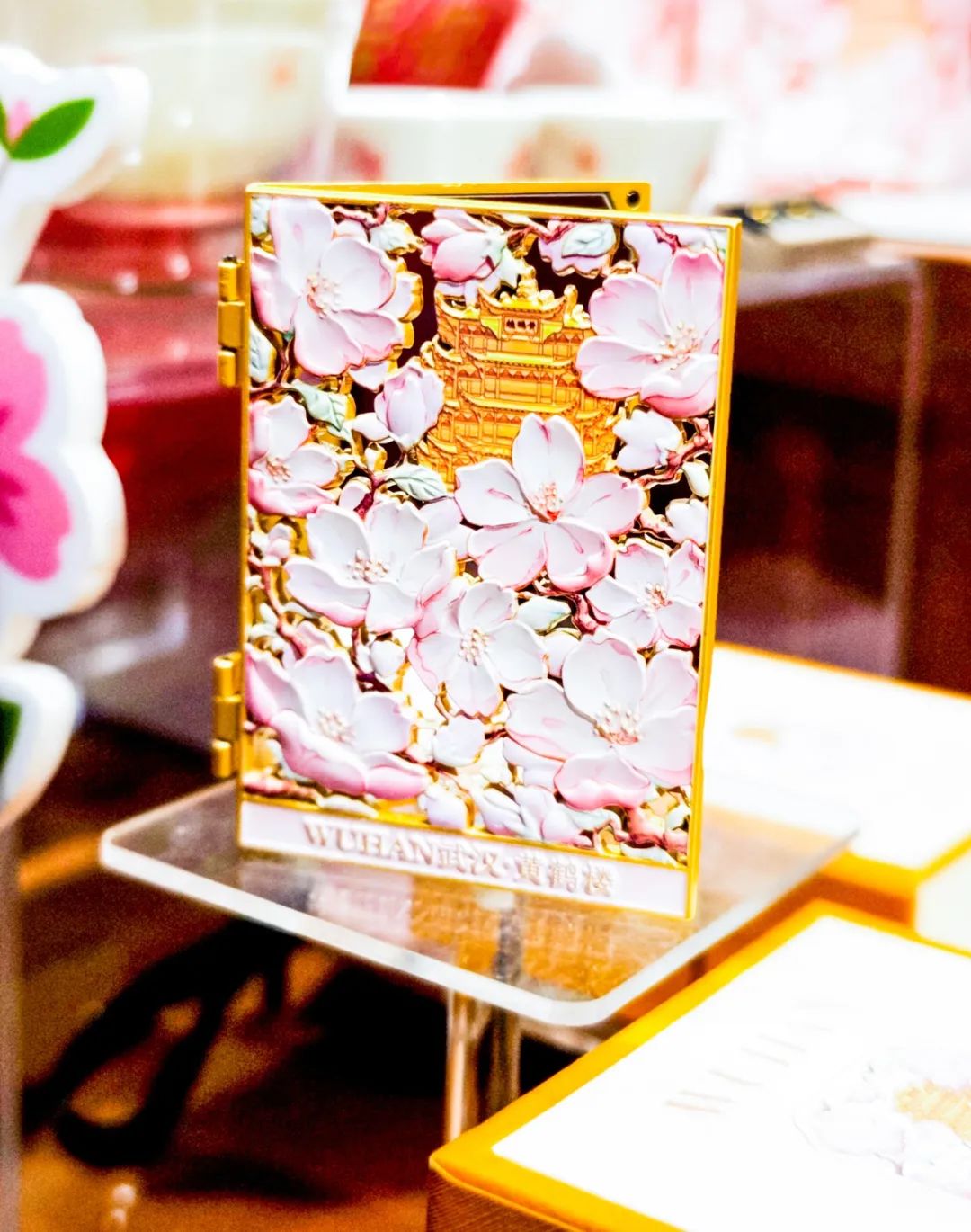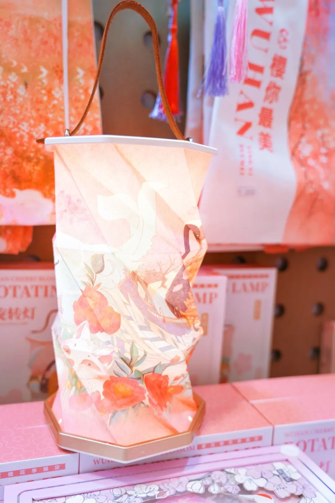 小编在武汉礼物昙华林店看到,店里摆放了各式樱花色产品,有樱花书签、樱花古韵旋转灯、樱花卡套、樱花棒棒糖、樱花饼礼盒等,每一款都很精致。