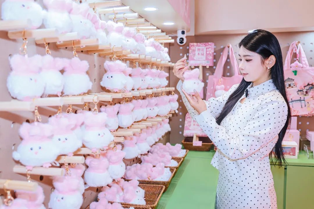 店里装修得古色古香,有樱花冰箱贴、樱花书签、樱花明信片等文创产品,今年还上新了热干面娃娃、“樱你有钱花”挂件、樱花冰箱贴等产品,适合慢慢逛、细细选。